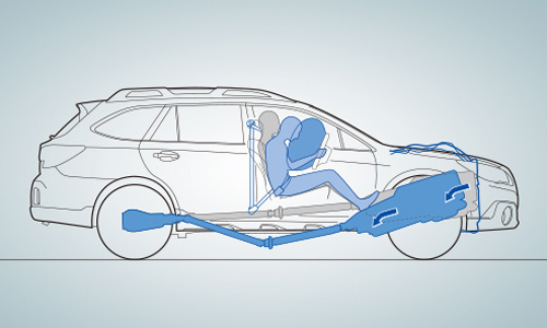 Los coches Subaru tradicionalmente son acondicionados con el motor Subaru boxer, horizontalmente opuesto. Con un inherente bajo centro de gravedad, el motor permite que la transmisión y otros componentes de la misma puedan ser colocados de forma recta, simétrica. Este diseño permite que el motor se desplace bajo el suelo durante una colisión frontal y ha demostrado ser por mucho, más seguro que otros motores, donde la transmisión y otros componentes se empujan a menudo dentro de la cabina durante la colisión.