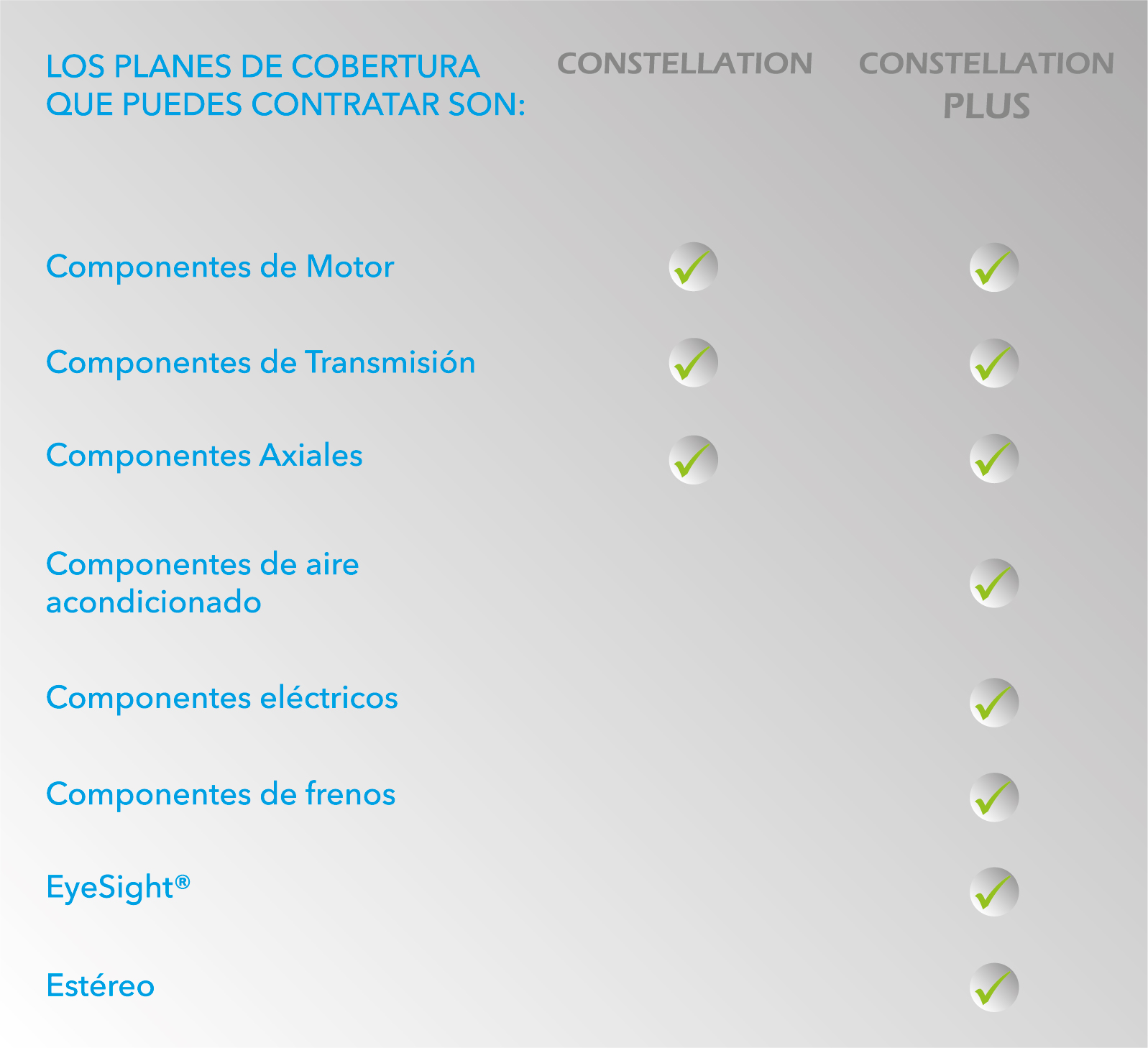 Para tener mayor información, pregunta a tu asesor de ventas sobre el detalle de las coberturas ó comunícate al 800-070-1010 o escribe un mail atencionaclientes@subaru-mx.com