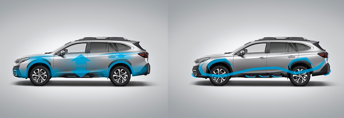 Como modelo insignia de SUBARU, la nueva Outback expresa su concepto de diseño 'Active x Tough' a través de siluetas dinámicas, líneas de ventana, mayor profundidad y el poder desde el marco de la ventana hacia abajo.